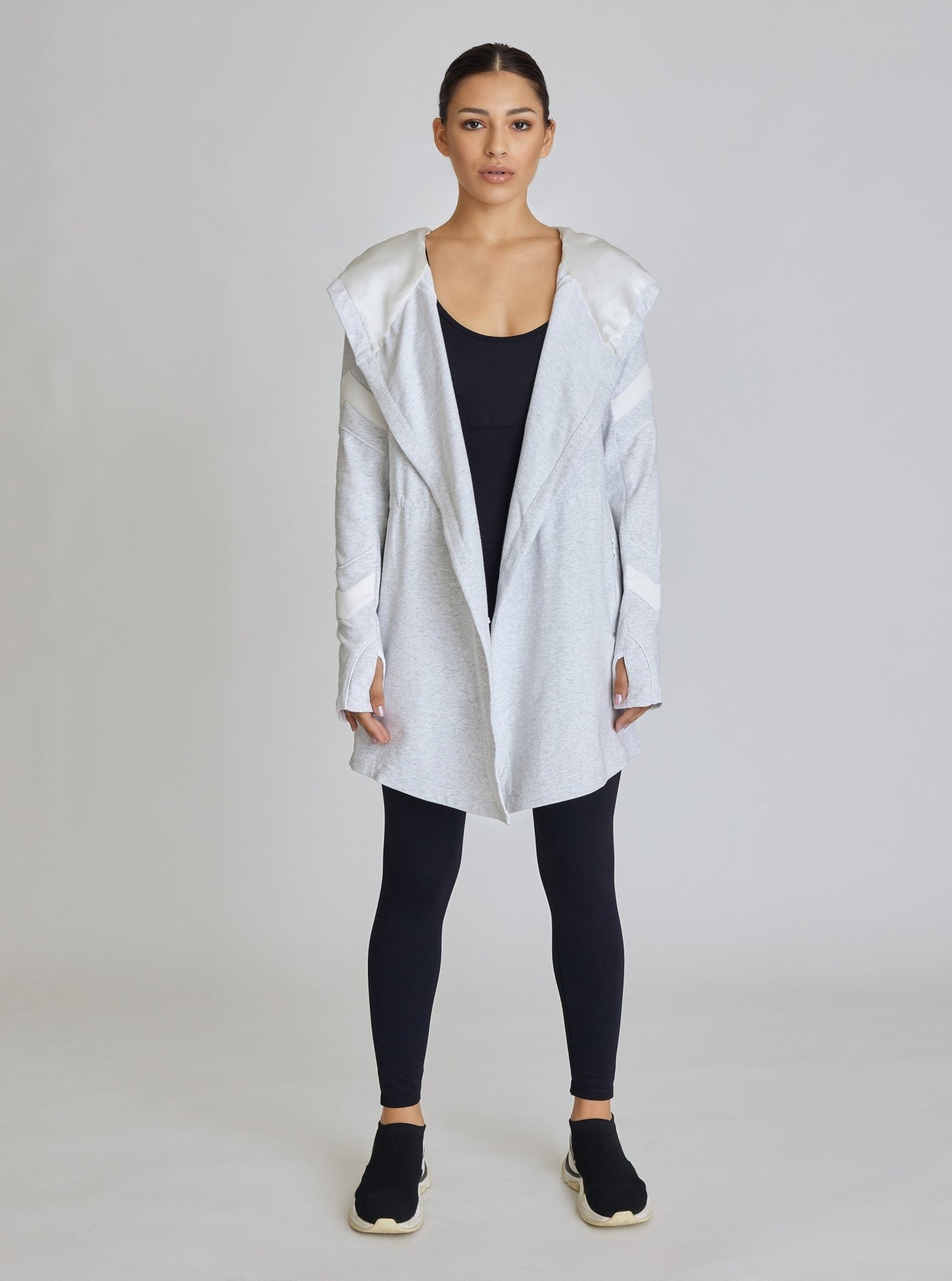 Discover both fashion and comfort with the KATIA Traveler Jacket! Made with an adjustable waist, thumbholes, and luxurious silk lining in the hood, it's perfect for any adventure. Look great and feel great with the KATIA Traveler Jacket - the perfect way to travel in style!