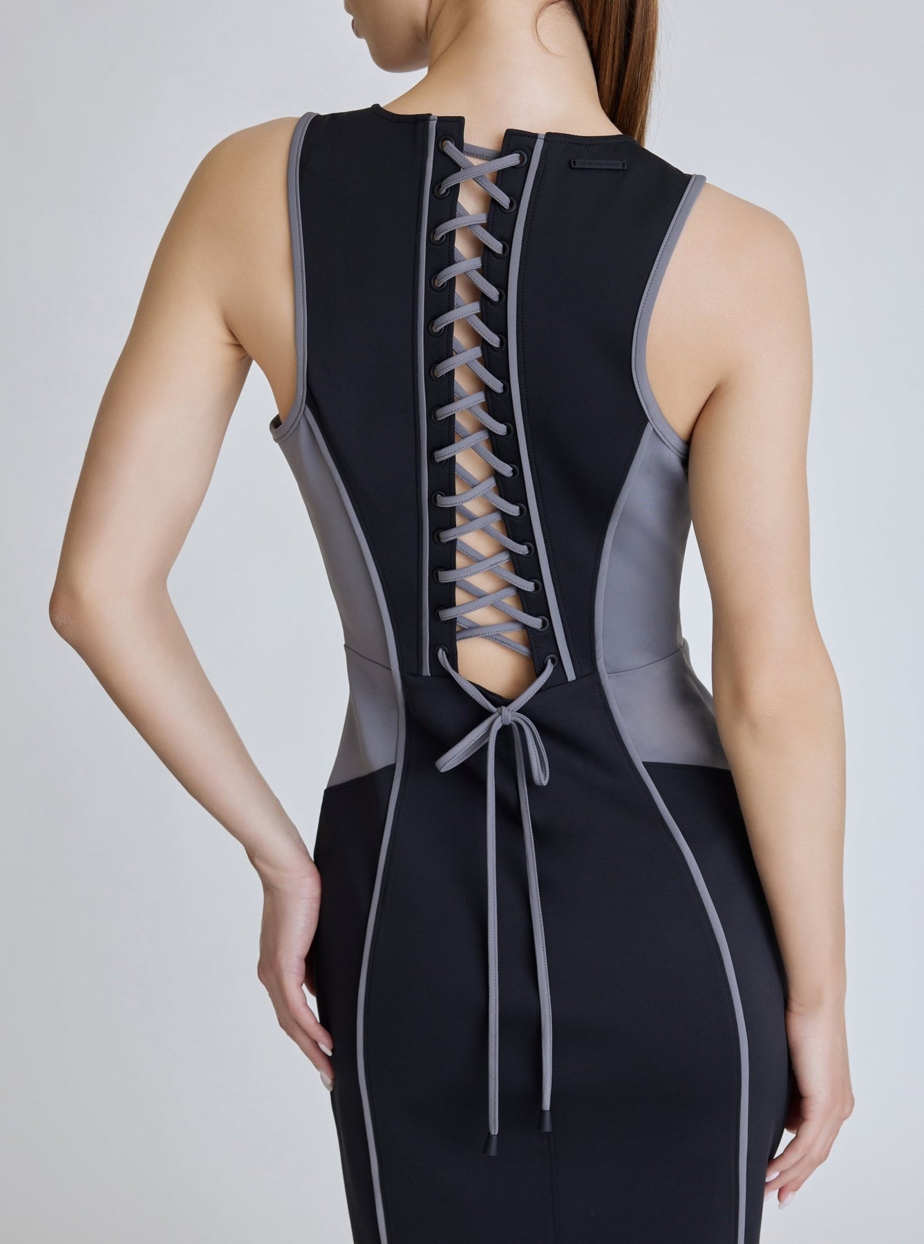 Lace Back Dress - Black Colorblock - Blanc Noir Online Store
