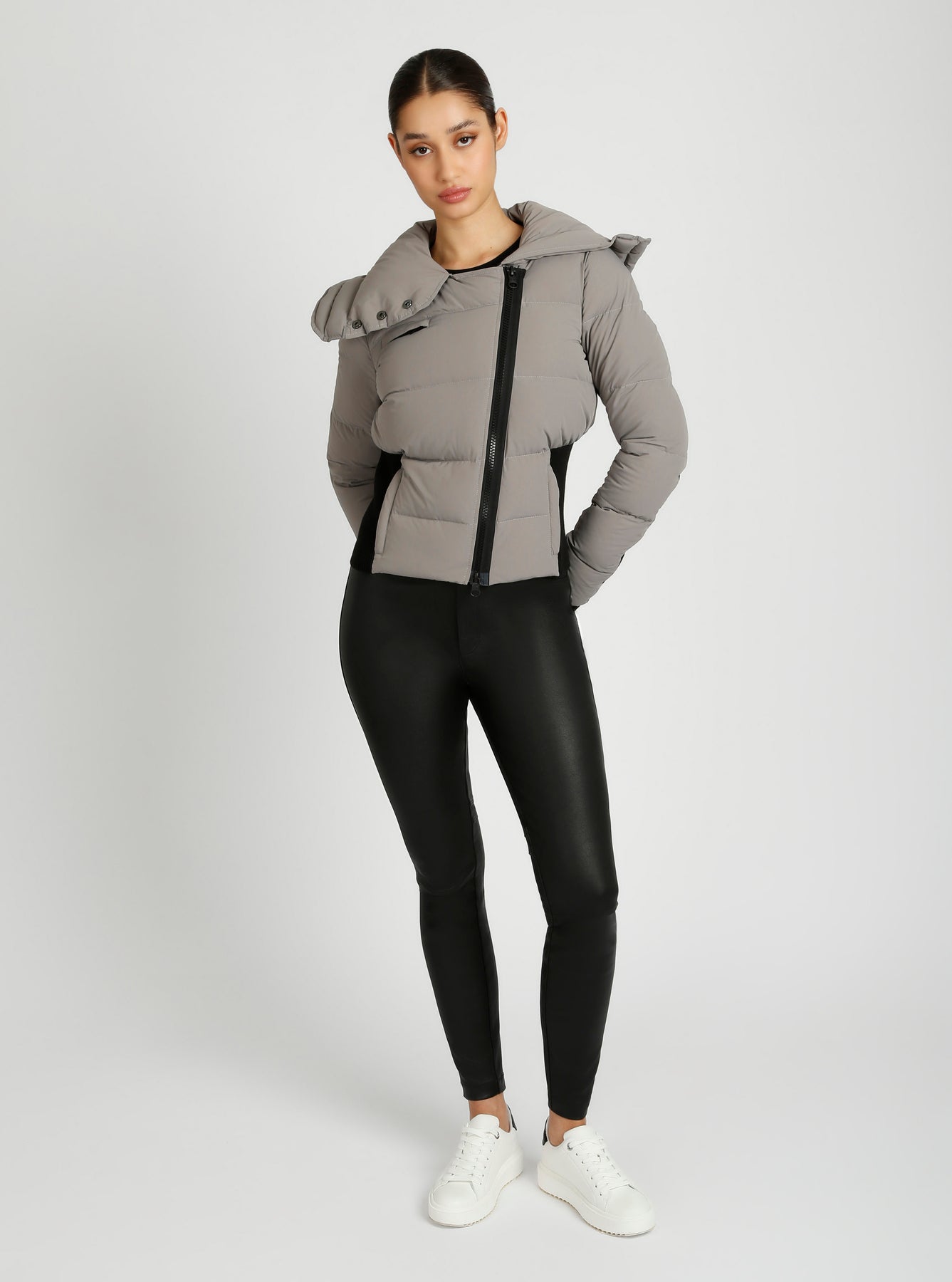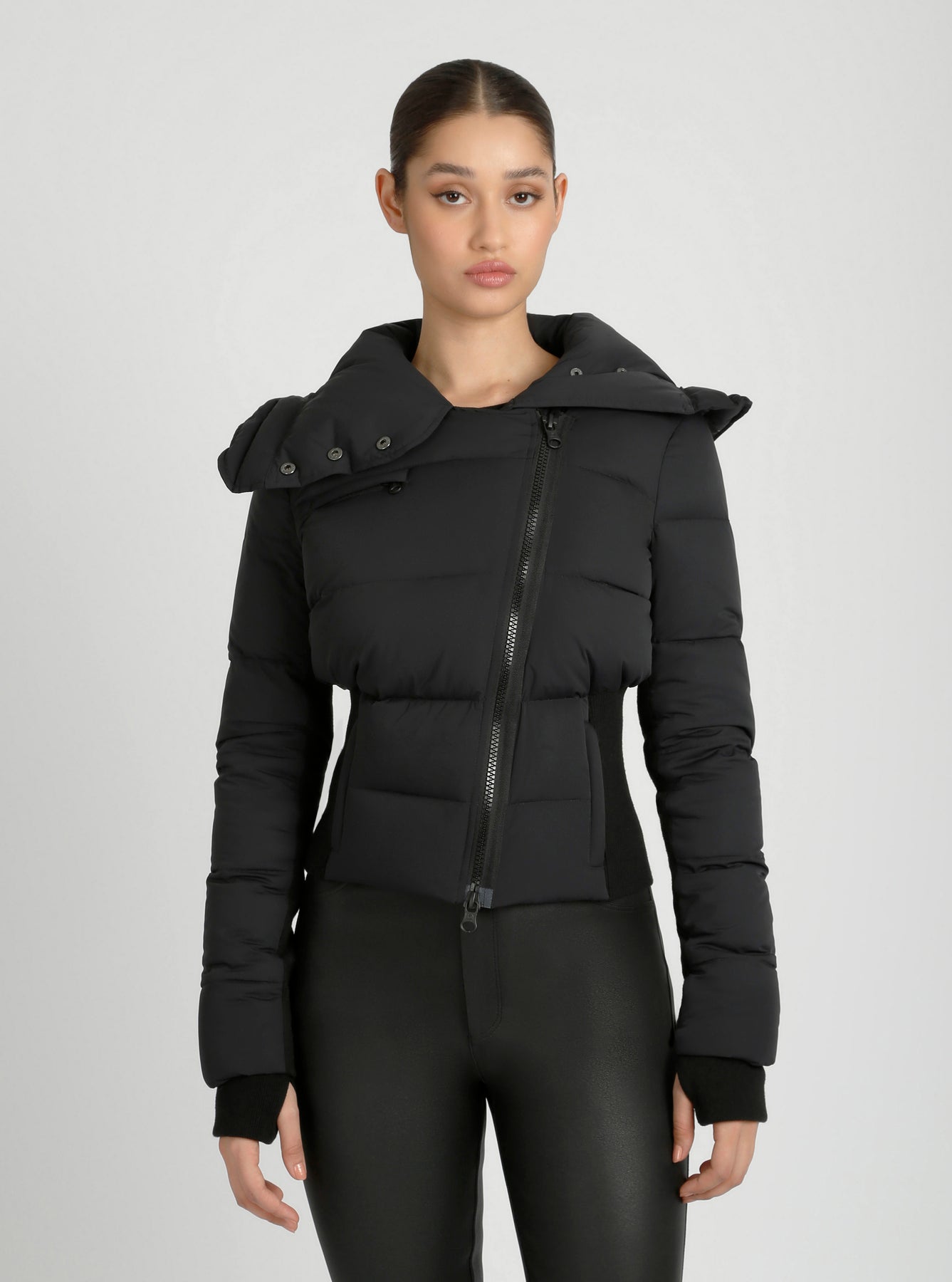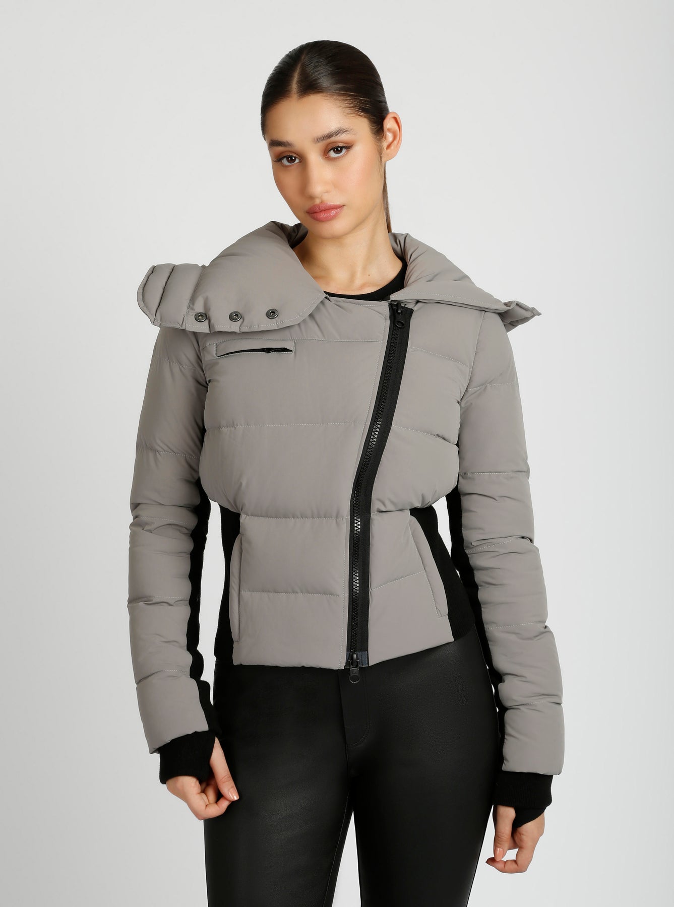 Asymmetrical Down Filled Puffer Jacket w/Waist Detail