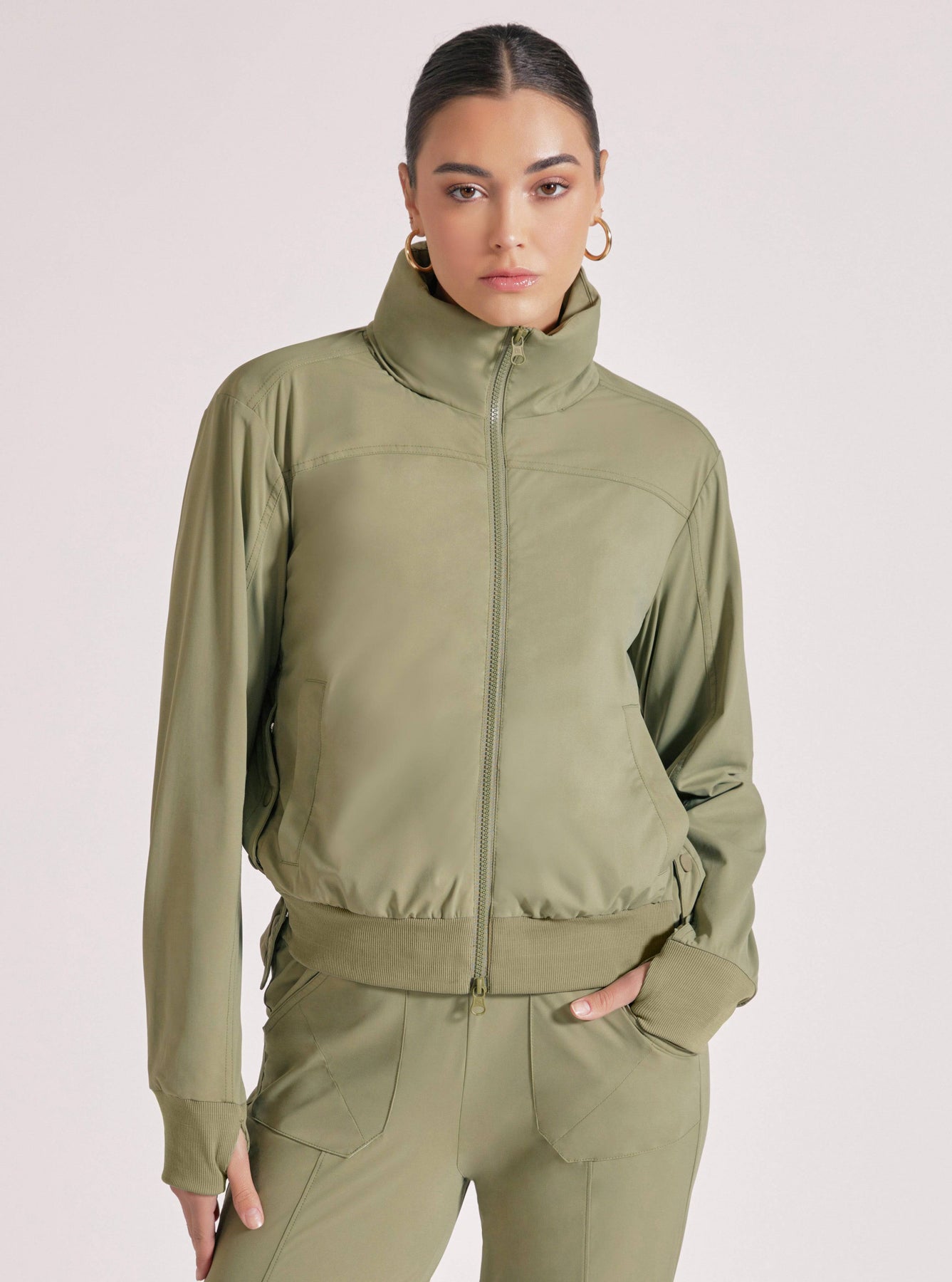 Our Mastermind Bomber projects modern comfort and class. Crafted with Technical Mastermind Fabric – 77% nylon/23% spandex – it provides a 4-way stretch for freedom of movement. Not to mention Snap Pockets, Functional Snaps, Details At Side Seam, Invisible Hood Under Collar and Zipper CB Length:24 1/2"