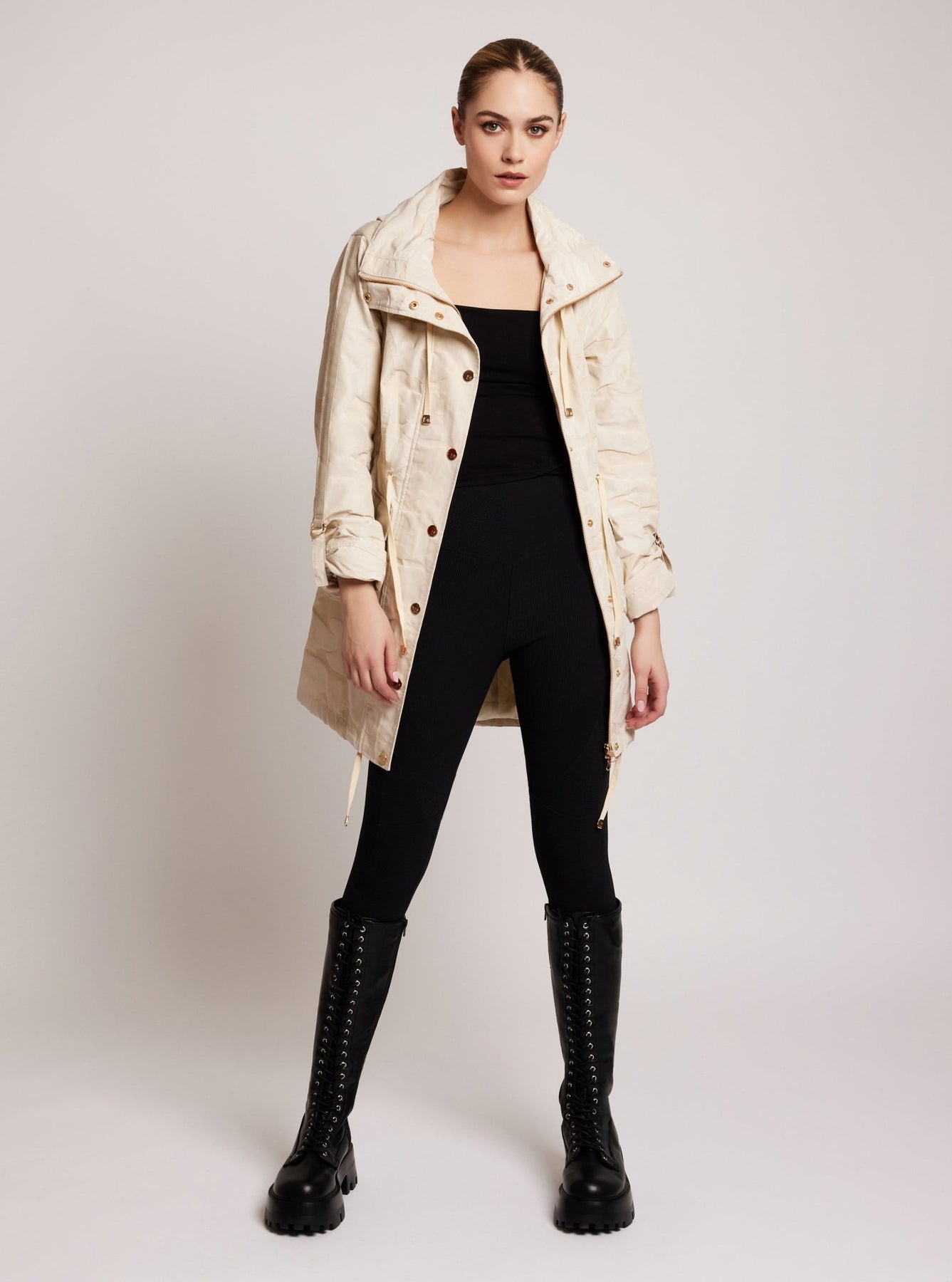 Look and feel amazing no matter the weather in this CAMO ANORAK, featuring an adjustable waist, thumbholes on storm cuffs, a hood, and a CB length of 32". You'll be ready for anything with this stylish, functional jacket that offers protection and comfort.