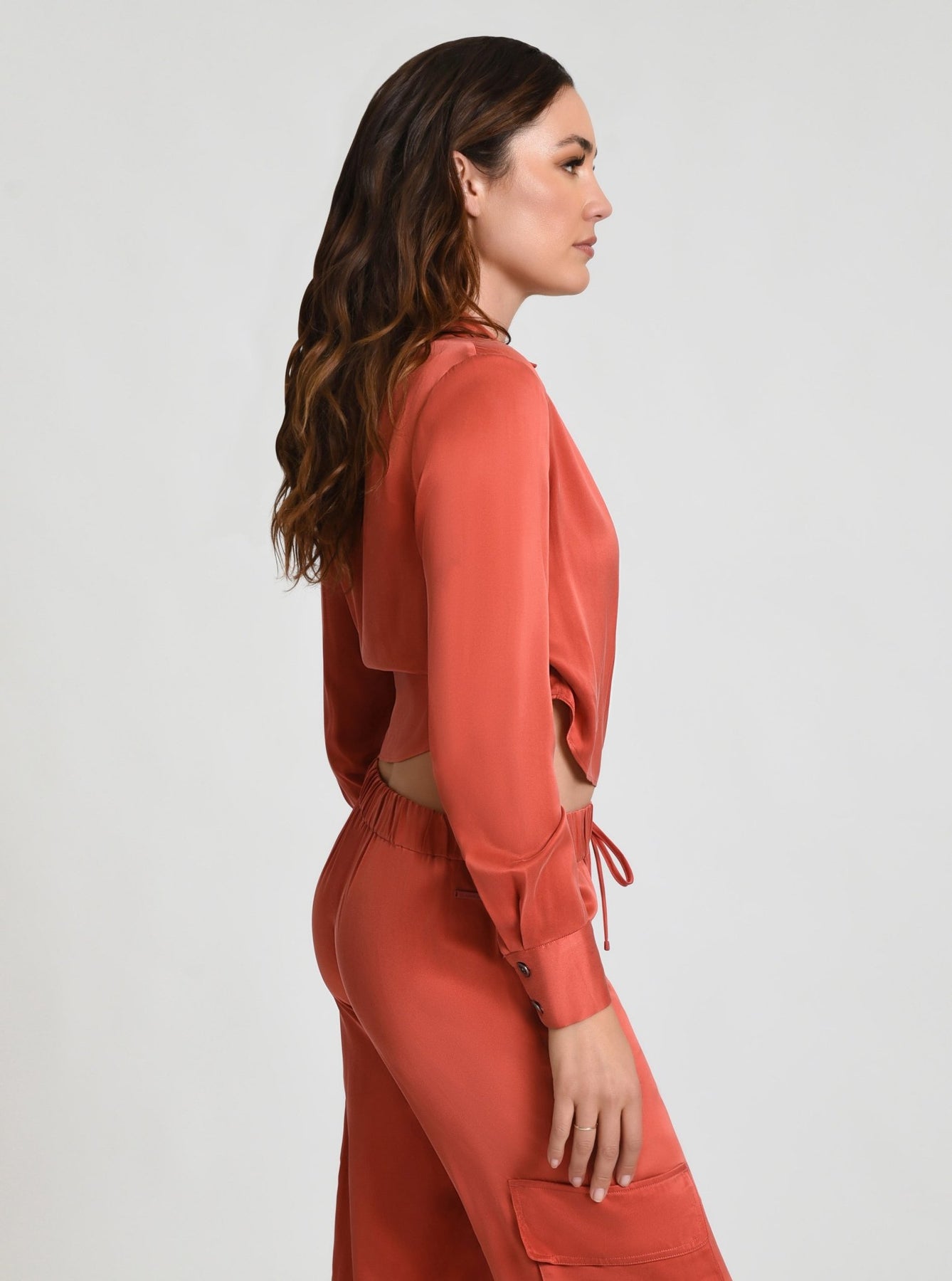 Wrap yourself in luxury with our Silk Wrap Shirt! Featuring an adjustable strap with functional double D rings at the side, this wrap top is both stylish and practical. Enjoy the ultimate comfort and versatility of this functional piece. Pairs perfectly with the Chelsea Silk Wide Leg Pants.