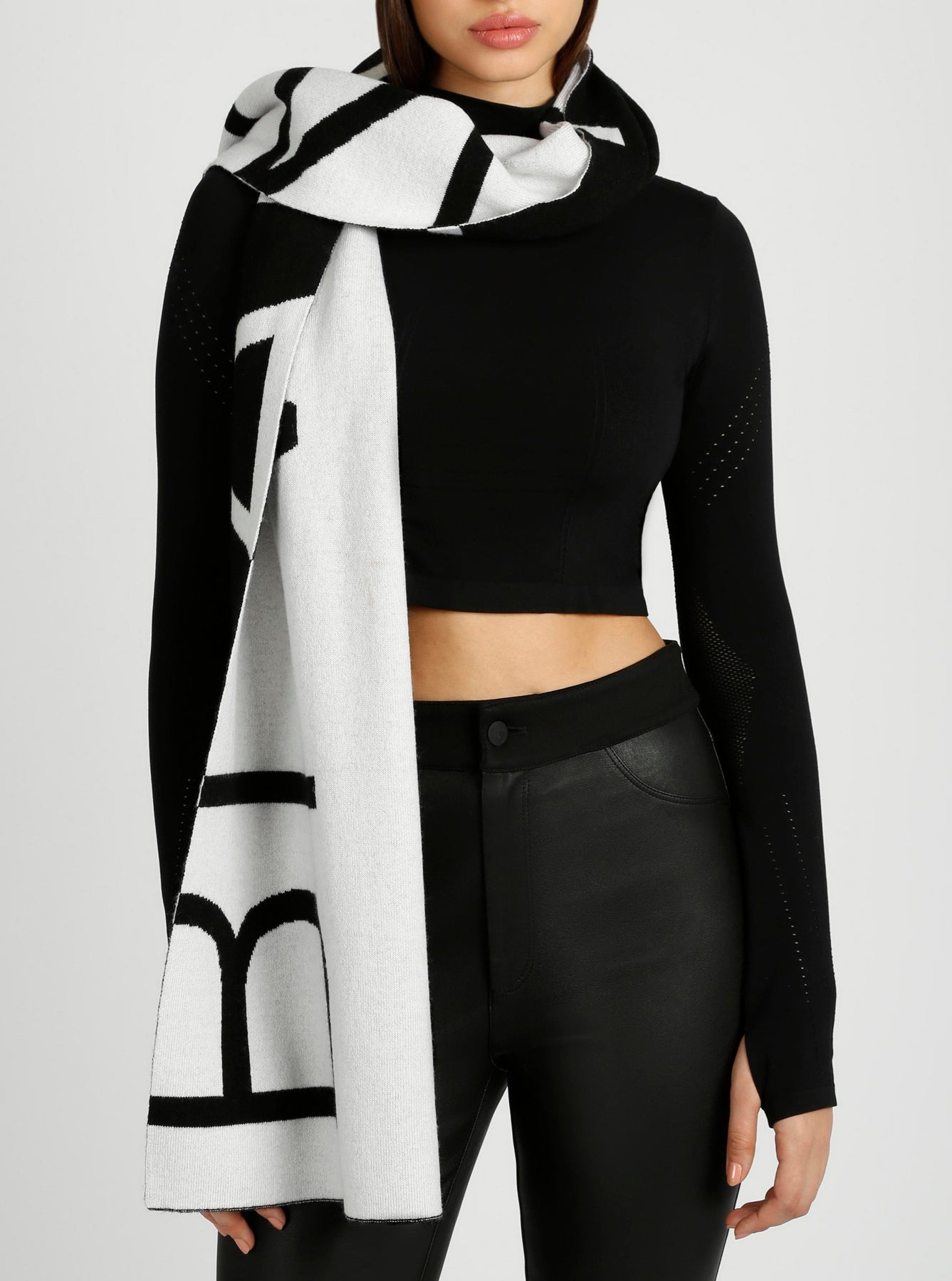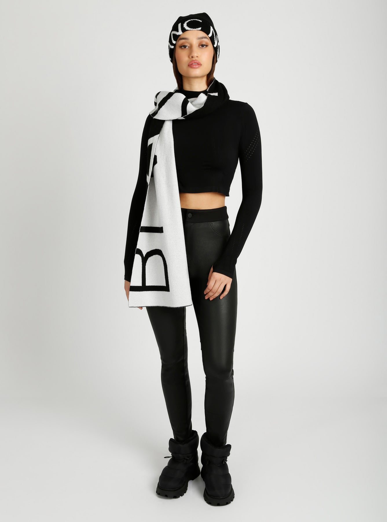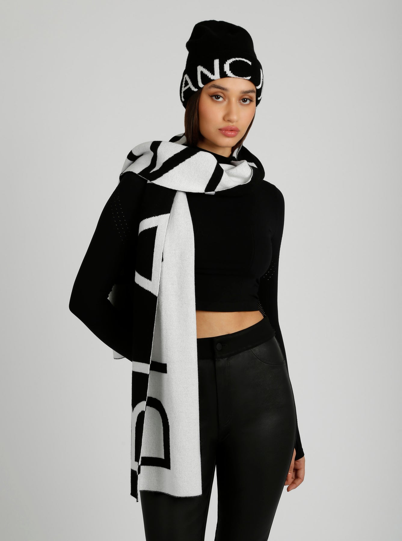 Wrap yourself in warmth and luxury with our Jacquard Knit Scarf. Made with a blend of fine wool and cashmere, it offers unparalleled comfort and coziness. Featuring the iconic Blanc Noir logo, this scarf adds a touch of style and sophistication to any winter ensemble. Treat yourself to this exclusive accessory.