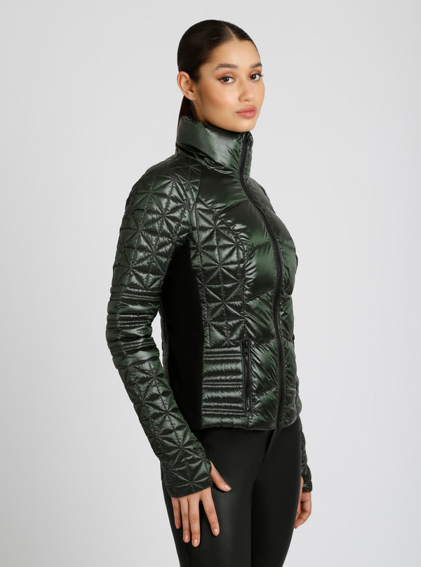 This BEST SELLING lightweight puffer is filled with warm-down and features compression knit insets for a comfortable range of motion. The exposed welded pockets and zippers add an edgy style, while the zipped front makes it easy to wear. With a compact, packable design and a flattering 22-1/4" length, it's a bestseller for all your cold-weather adventures! This is a sporty cut jacket, so if you are between sizes we suggest sizing up on this jacket per our customer feedback.
